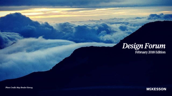 I’VE HAD THE OPPORTUNITY FOR THE LAST COUPLE YEARS TO HEAD MCKESSON’S QUARTERLY DESIGN FORUM. THE DESIGN FORUM IS A QUARTERLY HOUR MEETING THAT BRINGS EVERYONE TOGETHER WHO DEALS WITH DESIGN, TO SHARE, INSPIRE AND ASK QUESTIONS. IT WAS MY JOB TO LEAD THE CALLS AND CHOOSE THE QUARTERLY AGENDAS.